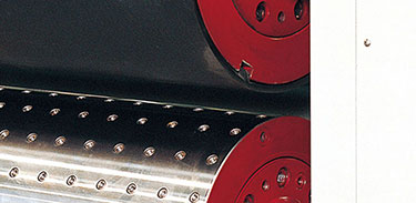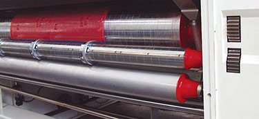模切单元 •快速更换模切刀模装置(选购)。 •胶垫辊机械螺旋换向50mm游动横向 结构。 •胶垫微切削修平结构,保持胶垫表面 平整。并可设定调整胶垫辊转速,保 持模切版与纸箱一致。 •胶垫辊速差补偿装置,补偿范围 土0.8%。 |